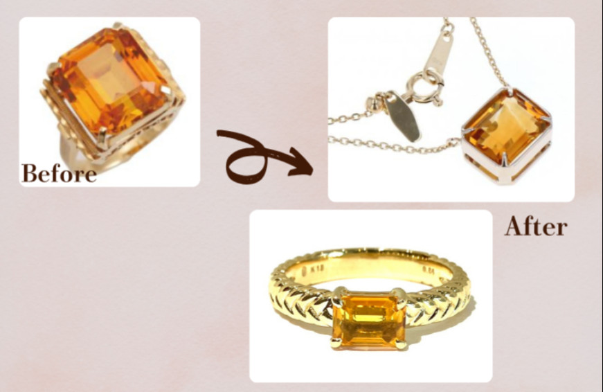 11月の誕生石、シトリンを使ったジュエリーリフォームのご紹介です。