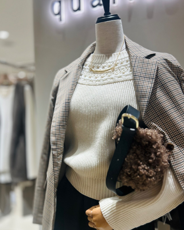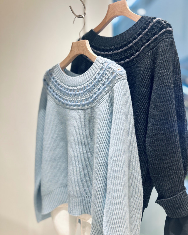 1枚でも存在感があり、レイヤードスタイルにも映えるデザイン。