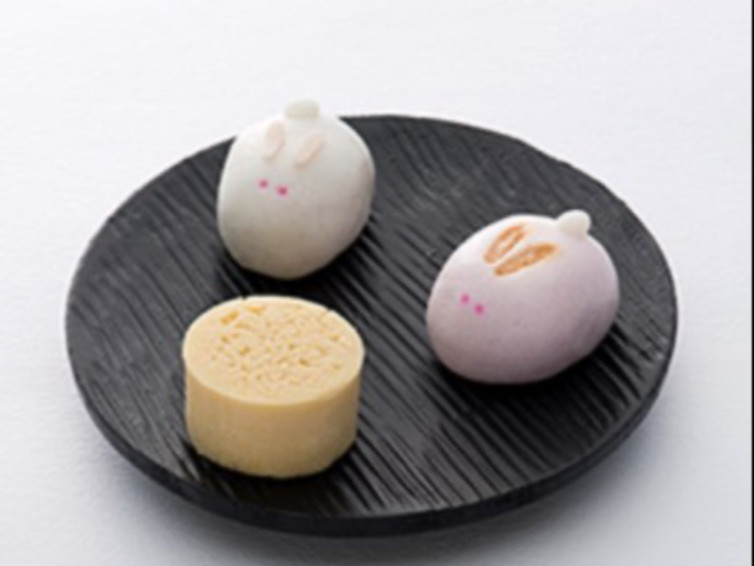 芋餡と半小豆餡のうさぎの饅頭と黄身時雨の月の詰合せ。