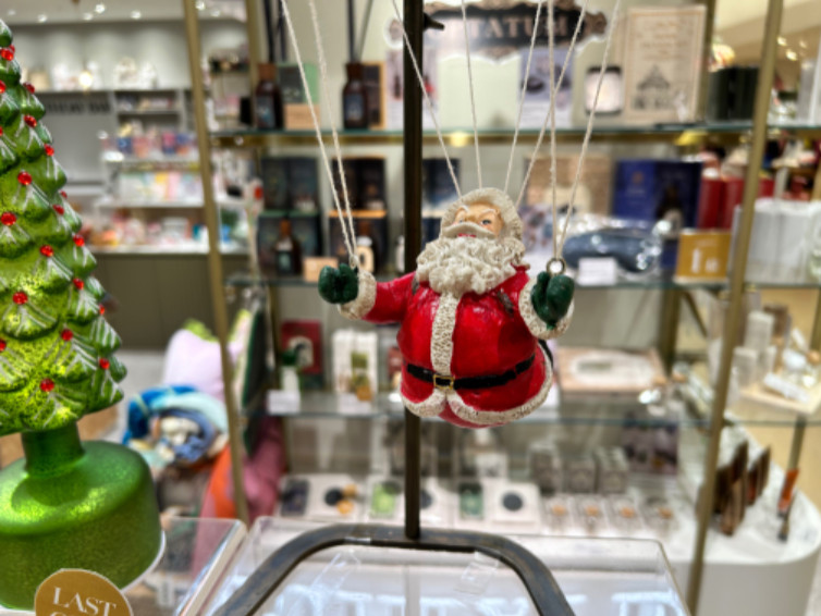 ツリーや空間にぶら下げて使用するパラシュートサンタ。