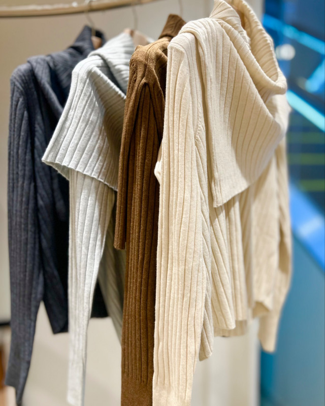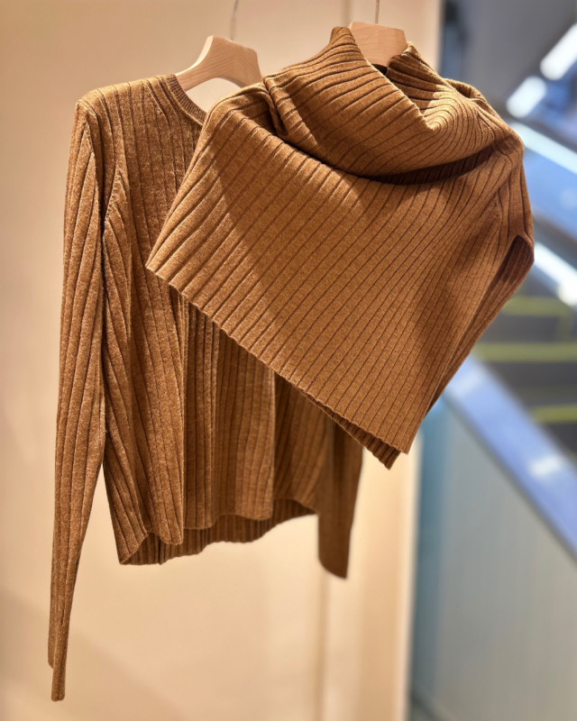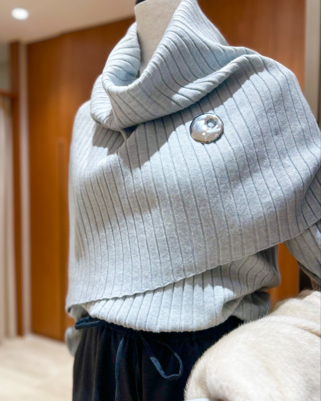 ベーシックなリブニットとアシンメトリーなスヌードのセットで、取り外し可能な2WAY仕様。