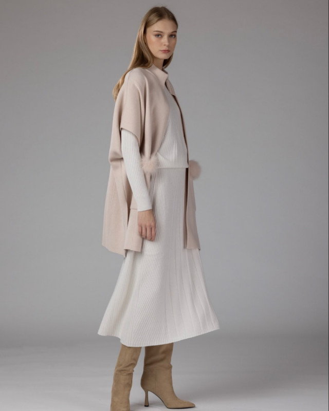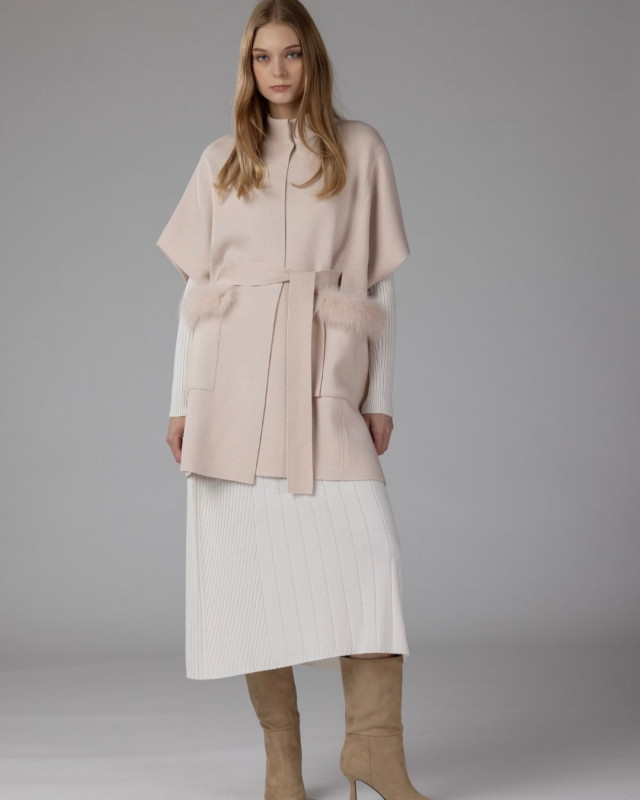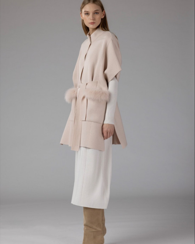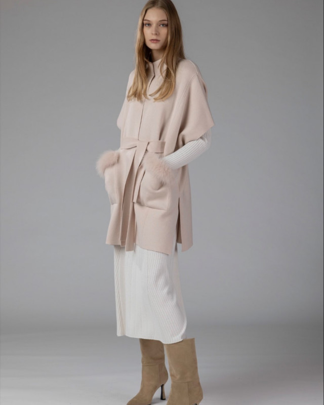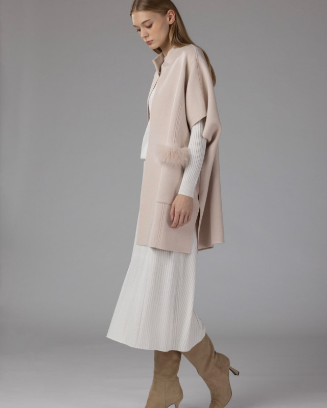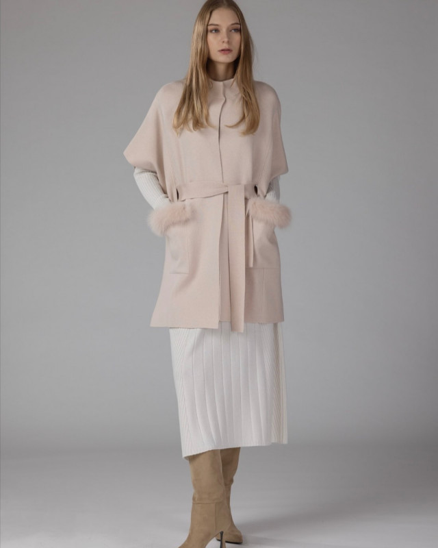 柔らかなピンクベージュと上品なシルエットが魅力の一枚です。