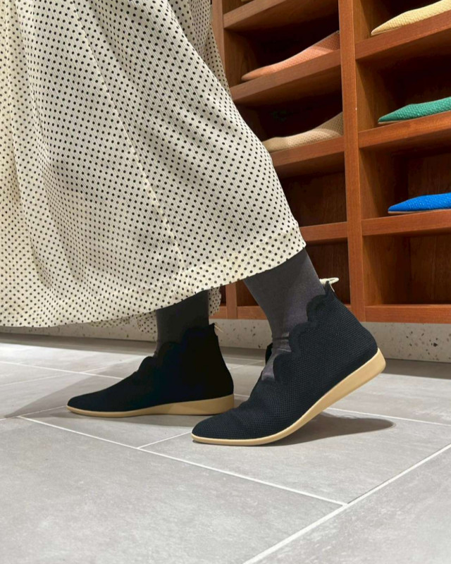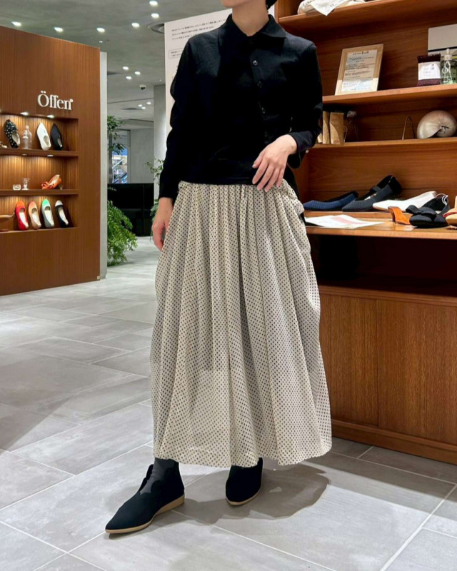 アッパーをアイコニックな装飾が彩る唯一無地の存在感で装いが一気にランクアップ。今ならブーツと同色のソックスやタイツでなじませるのが旬。