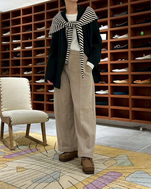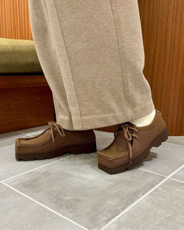 角ばったつま先にマニッシュなデザイン、立体的な厚底ソールと太めのシューレースで足元に適度なボリューム感が生まれます。