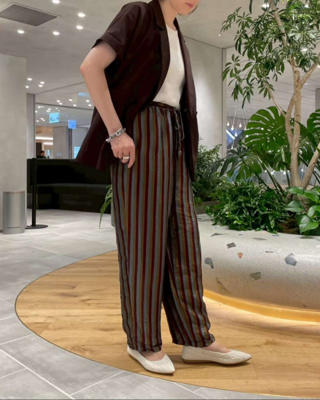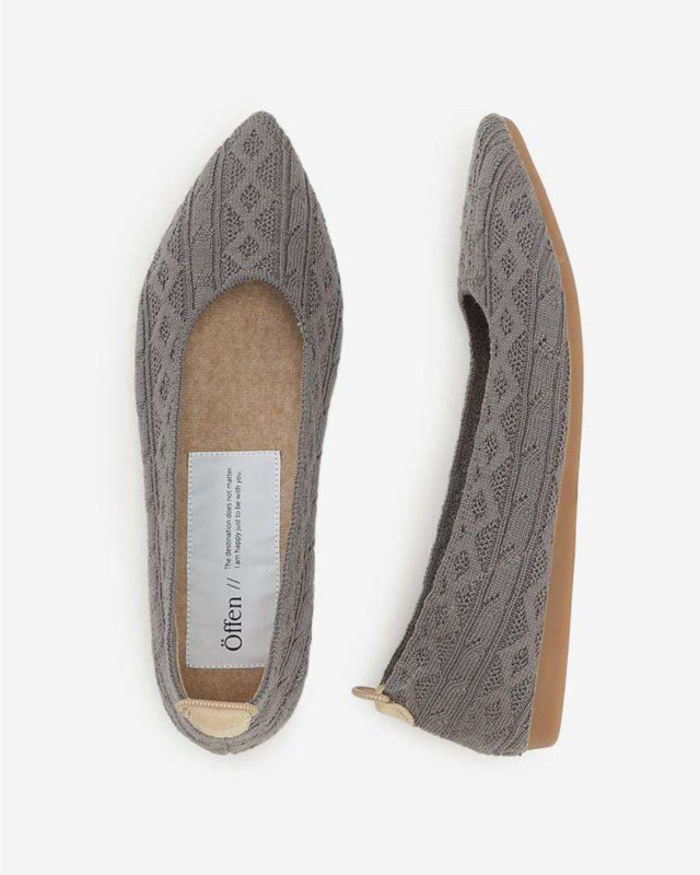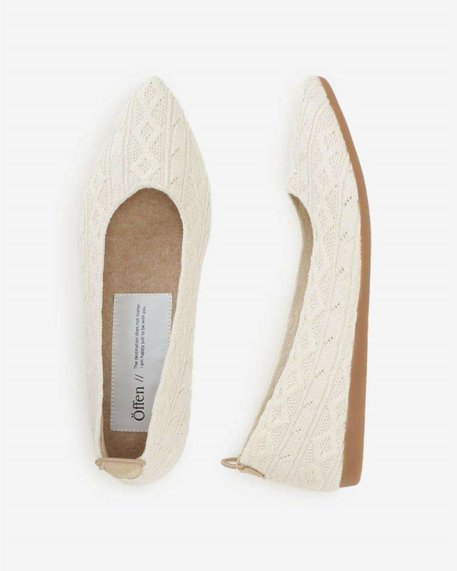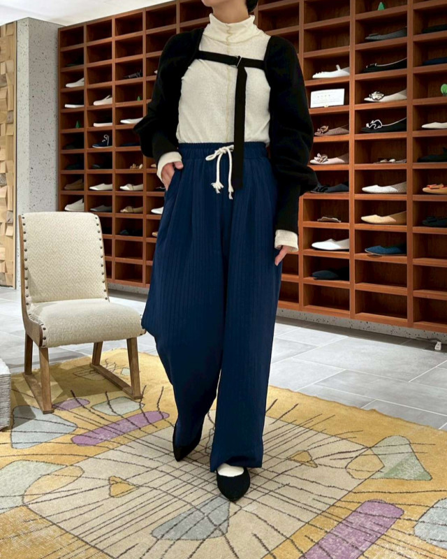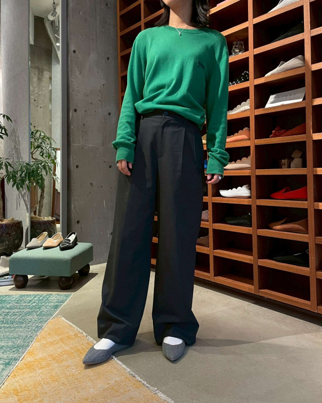 ケーブルニット編みのデザインがベーシックのなかにもフェミニンさを感じさせます。