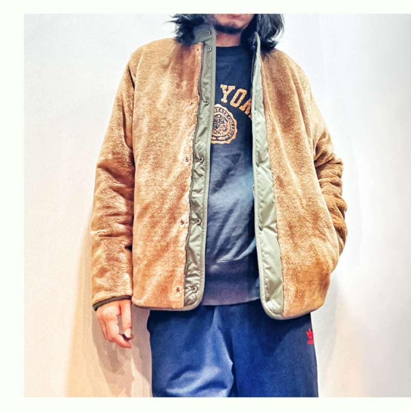 ボア素材はモンクレールらしいラグジュアリーな雰囲気をまとい、カモフラはちょっとワイルドなテイストと、シチュエーションによって使い分け出来るのがいいですね。適度なボリューム感なので3シーズン対応できそう。(¥424,600)