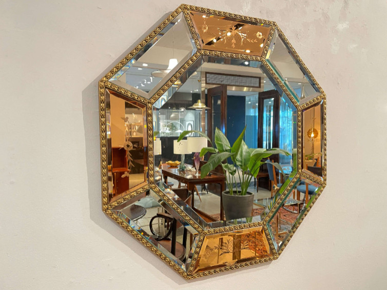 八角形のフォルムが印象的な、1960年代フランスのウォールミラー。