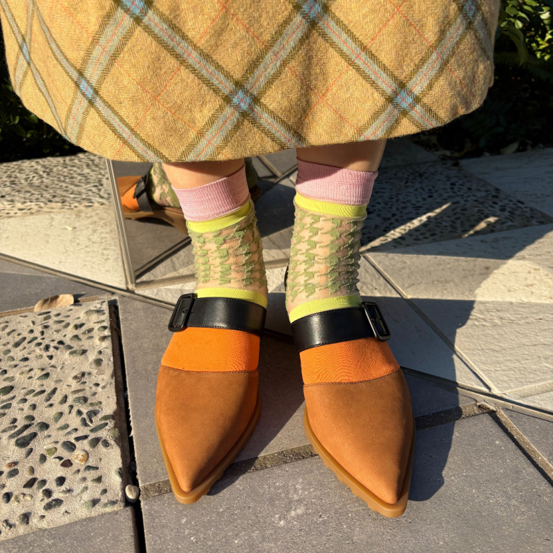 靴下とのレイヤードも楽しめるデザインです!