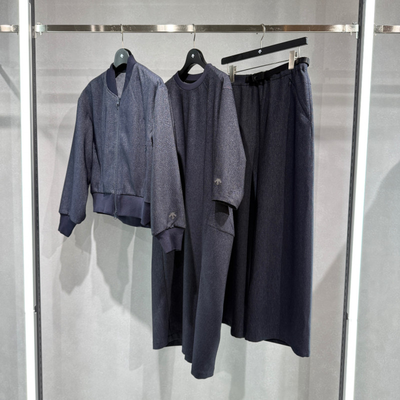 ポリエステル100%で、デニムにはない柔らかい着心地と