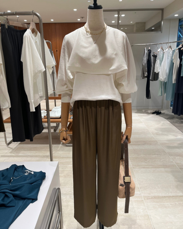 シンプルなボトムでもデザイン性が映え、1枚で着映えが叶います。