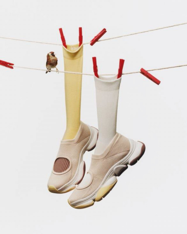愛らしい小鳥「フィンチ(アトリ科の鳥)」の色鮮やかな羽に着想を得ています。また、岩石地形に着想を得たCAMPERの「Karst」アウトソールに、軽量で伸縮性のあるアッパーを組み合わせたデザインです。