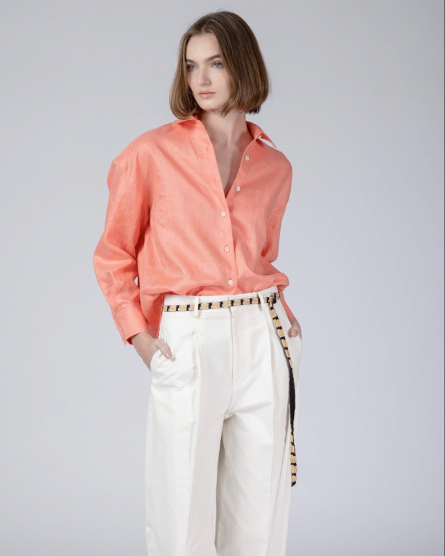【爽やかな彩りを纏うリネンシャツ】