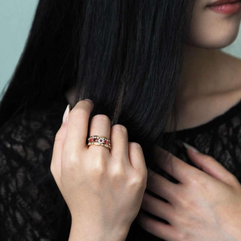 ローズカットならではの潤んだ輝き、透け感のある色合いが、指先に優しく上品な存在感を与えます。