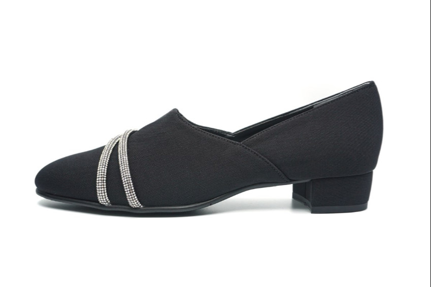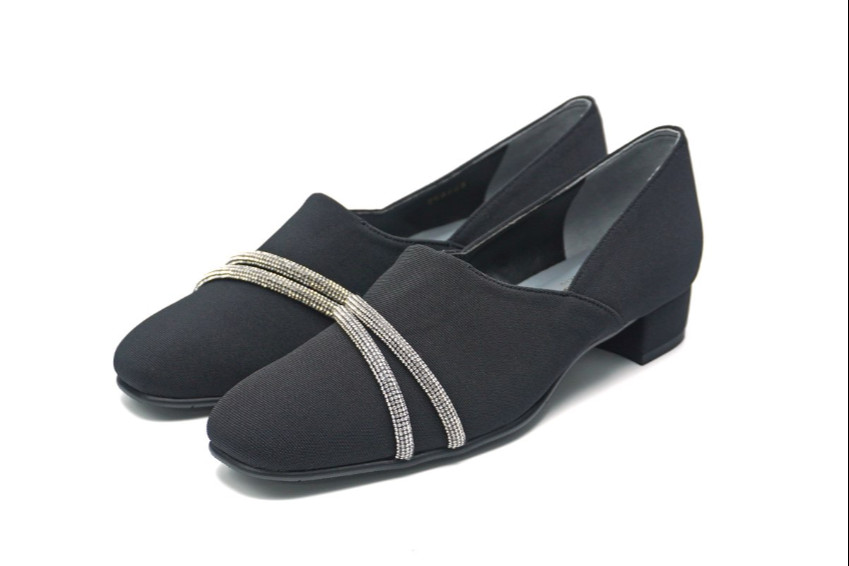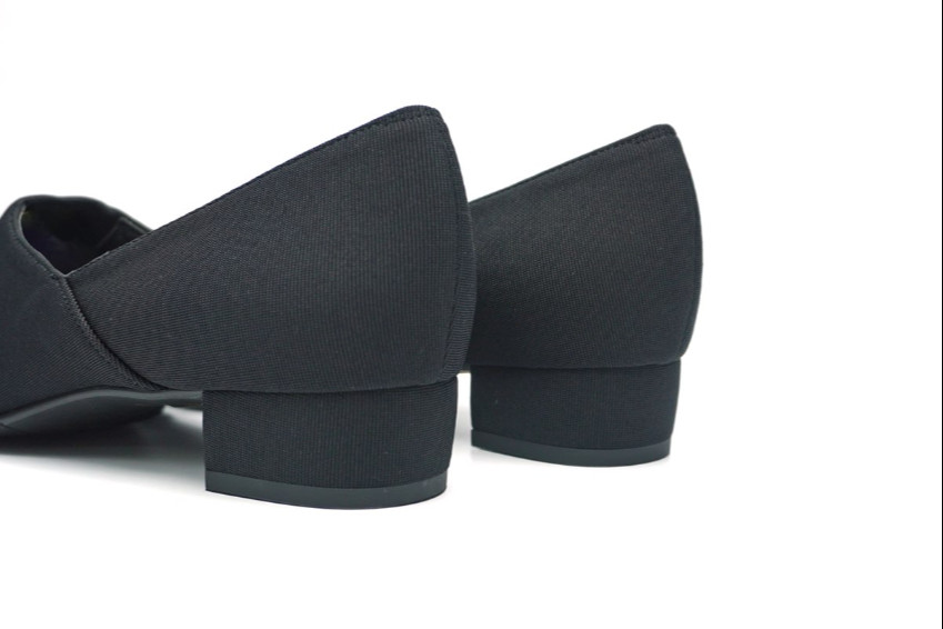 柔らかな足あたりのストレッチ素材を使用した、ローヒールパンプスです。