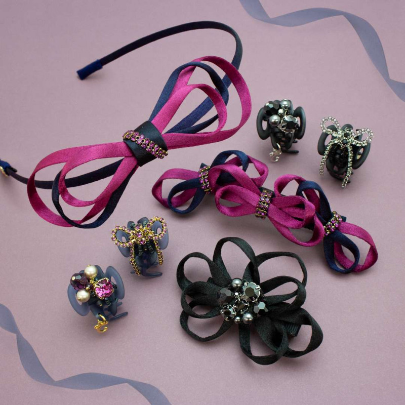 スワロフスキー®・クリスタルをさりげなく配し、大人のフェミニンスタイルをシックに演出してくれます。
