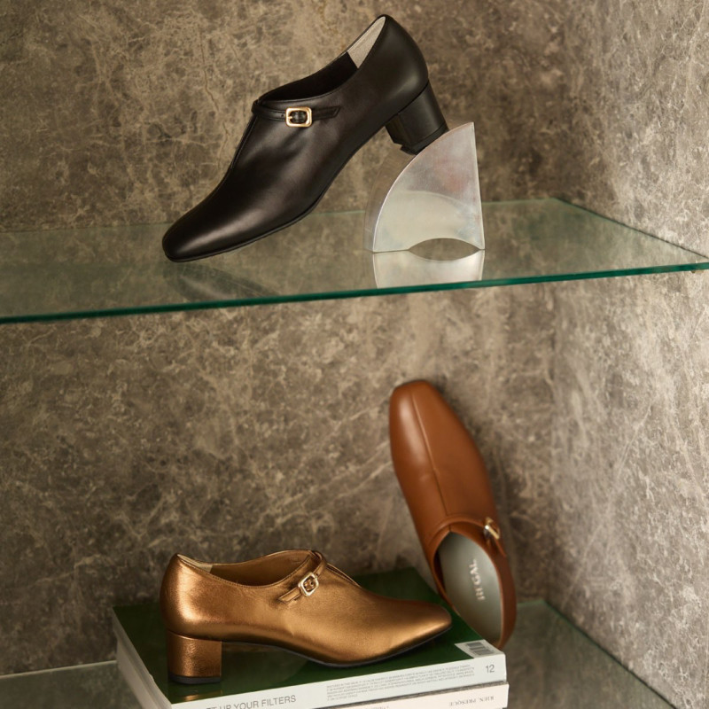 程よい高さのヒールで履きやすく足をしっかりホールド。細ストラップにあしらった丸みのあるバックルがやさしい印象に。インソール全面に4mmの低反発クッションが入っているので足当たりも柔らかいです。