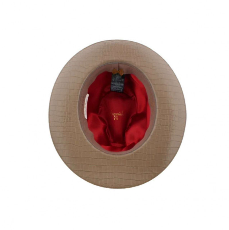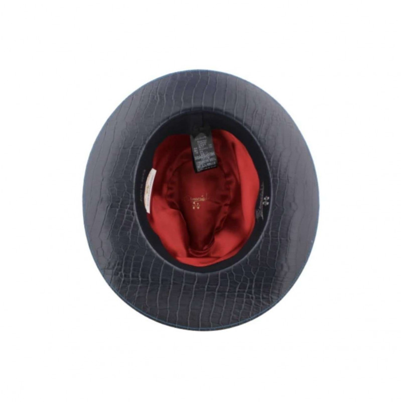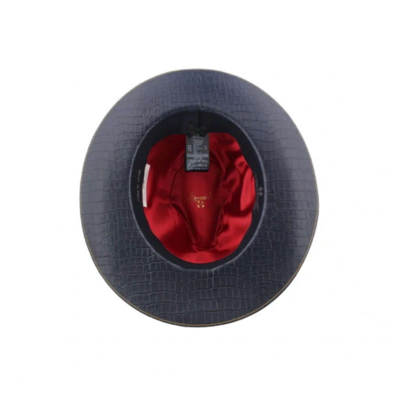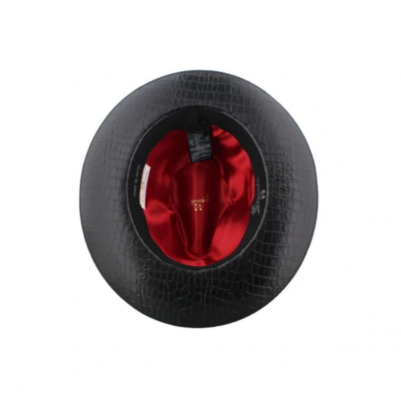 ツバの裏側から覗くクロコダイル模様に型押しをしたレザーが内に秘めた野生感を演出し、クラシックなテイストの中に野生的な雰囲気を醸し出すスタイルは幅広いシーンで存在感を放ちます。