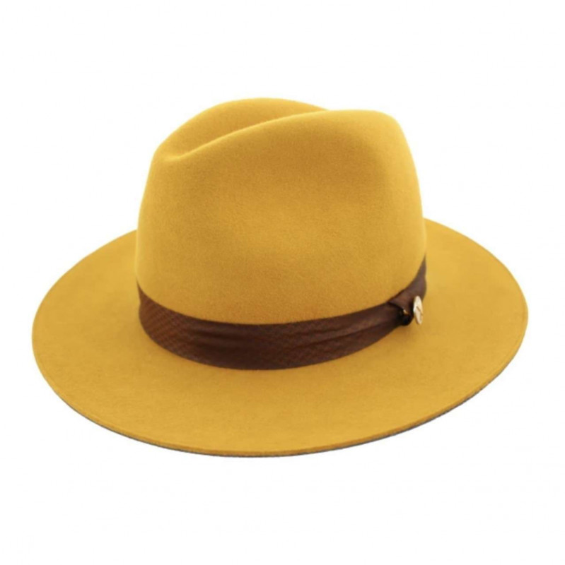 フェルトと牛革を圧着させる高度な技術を使用し、ツバの淵に施したステッチにより、自由なブリムラインのアレンジを可能にしています。