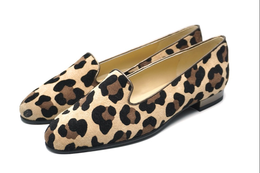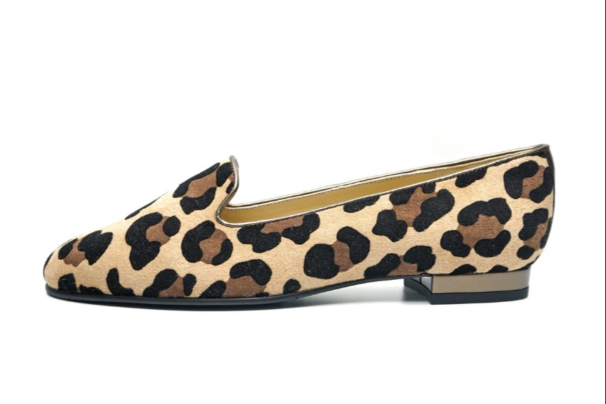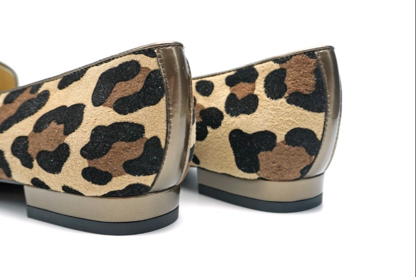 レオパードプリントレザーが際立つ、女性らしいシルエットのオペラパンプスです。