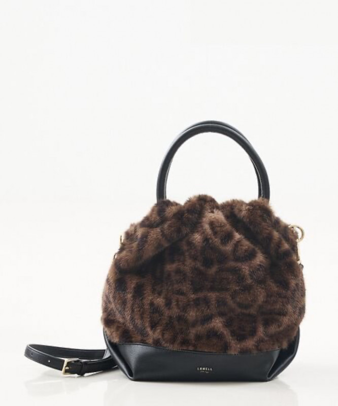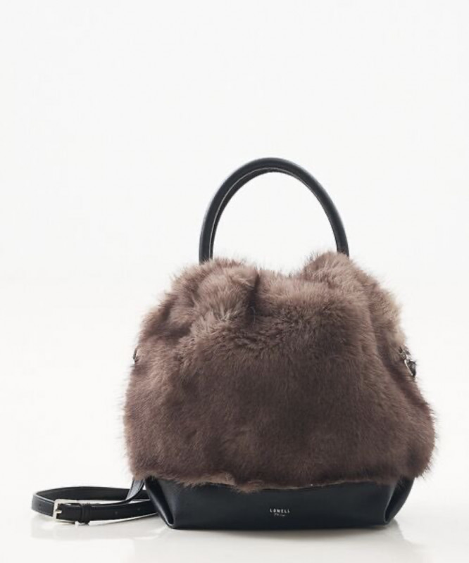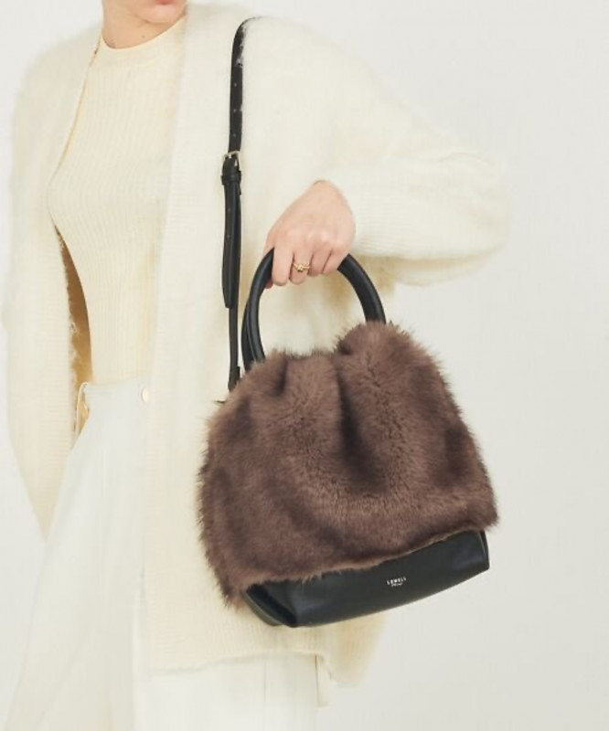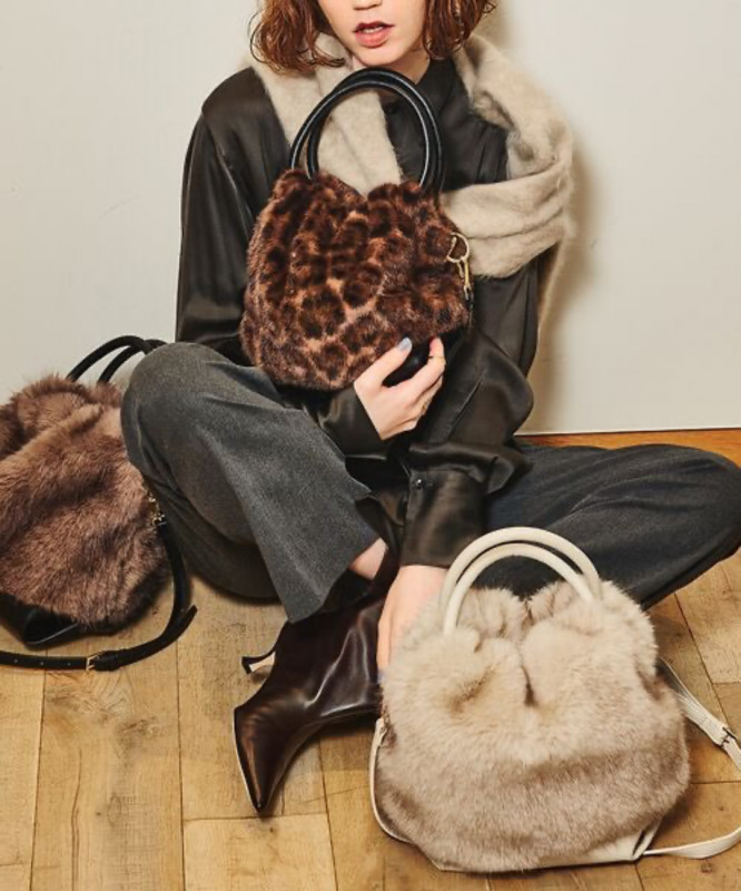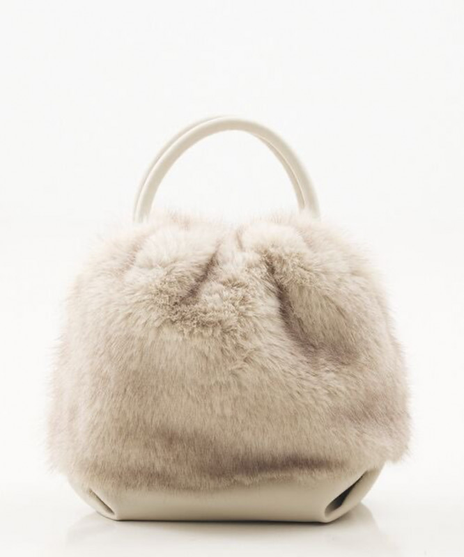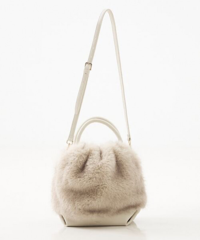 毛足の長い高級感あるフェイクファーにギャザーを寄せ、