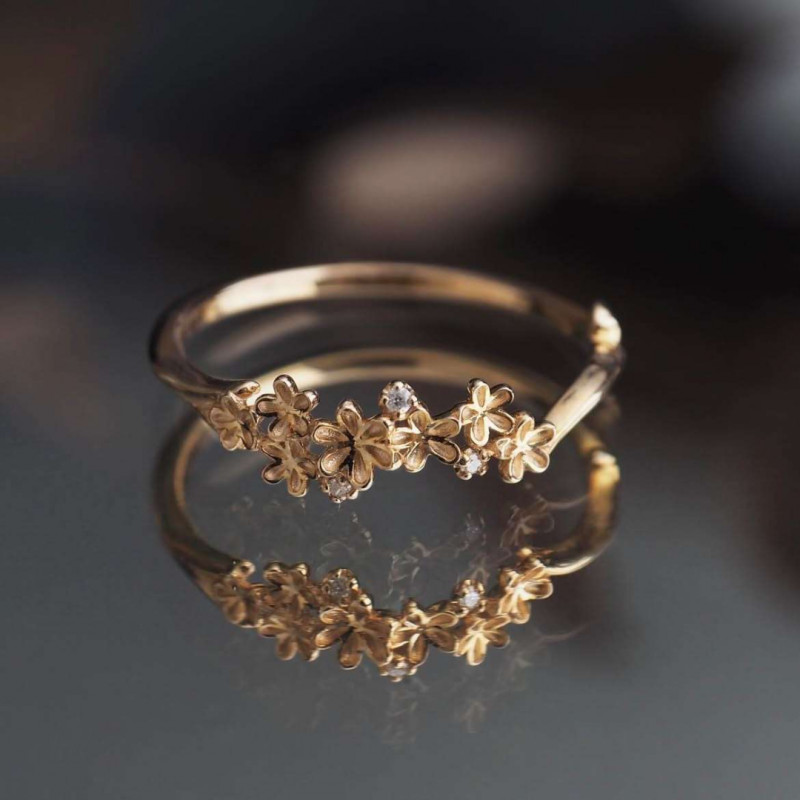 正面だけでなく指輪の隅々まで意匠を凝らすことで、一つ一つが物語を持ち、生き生きとした存在感をまとっています。