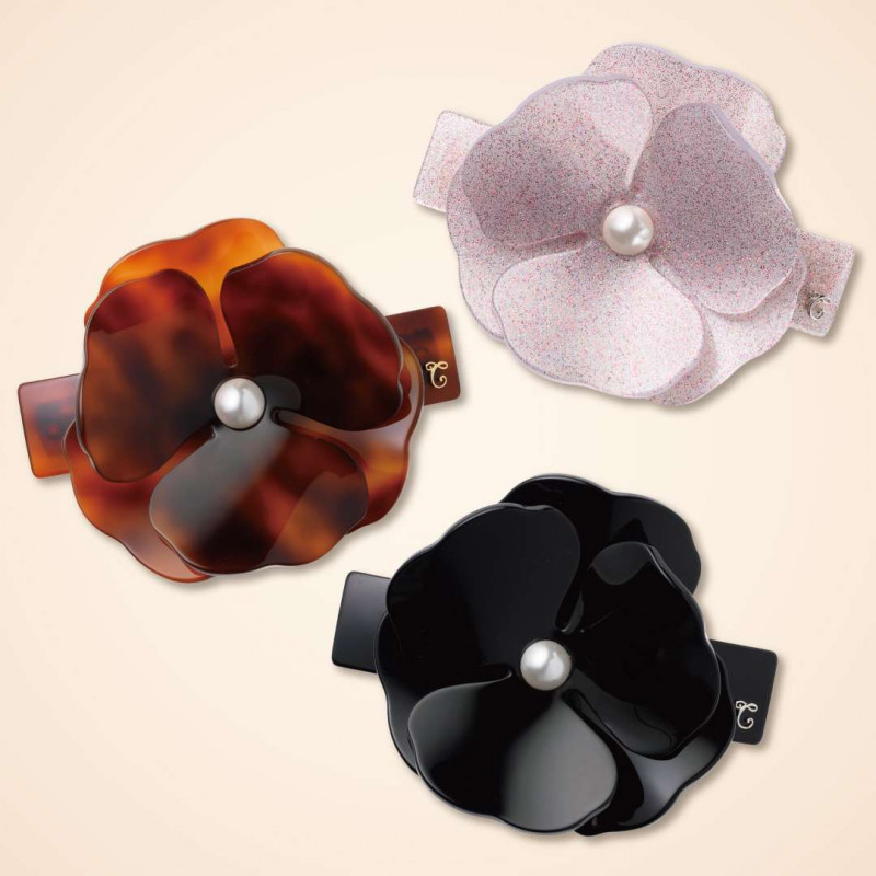 立体感はまるで花を髪に飾っているかのように華やかに。花びらに包み込まれたスワロフスキー® ・クリスタル パールの輝きが瑞々しさを感じさせるデザインです。