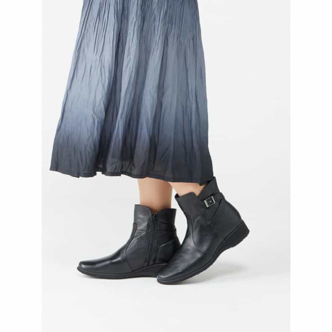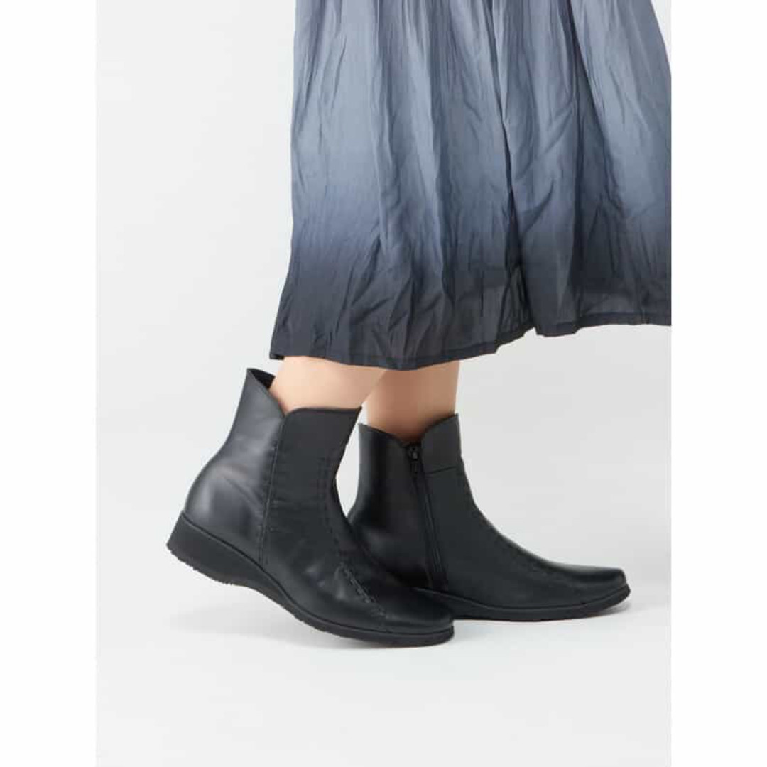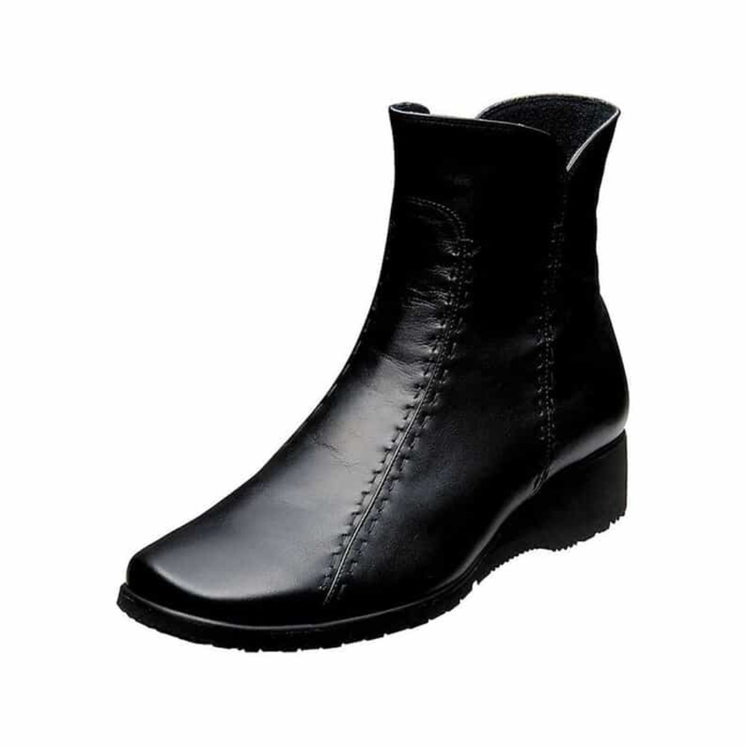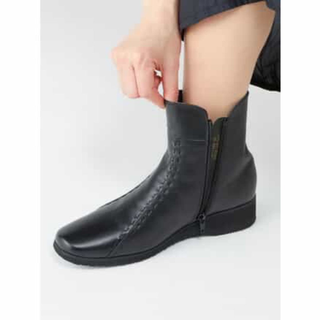 3.5cmヒールの3E幅スクエア木型。内側にファスナーを配置し、脱ぎ履きも簡単。スカートにもパンツにも合わせやすい、さまざまなコーディネートが楽しめる一足です。