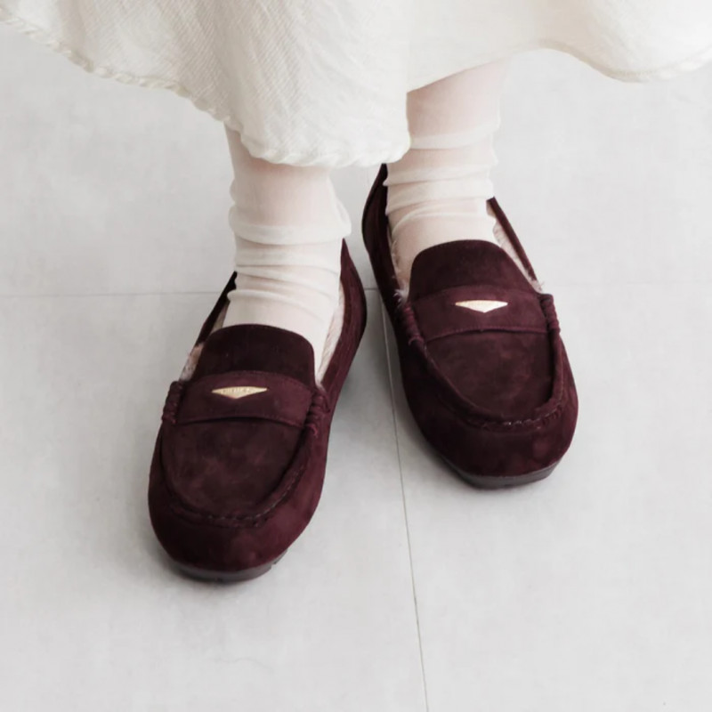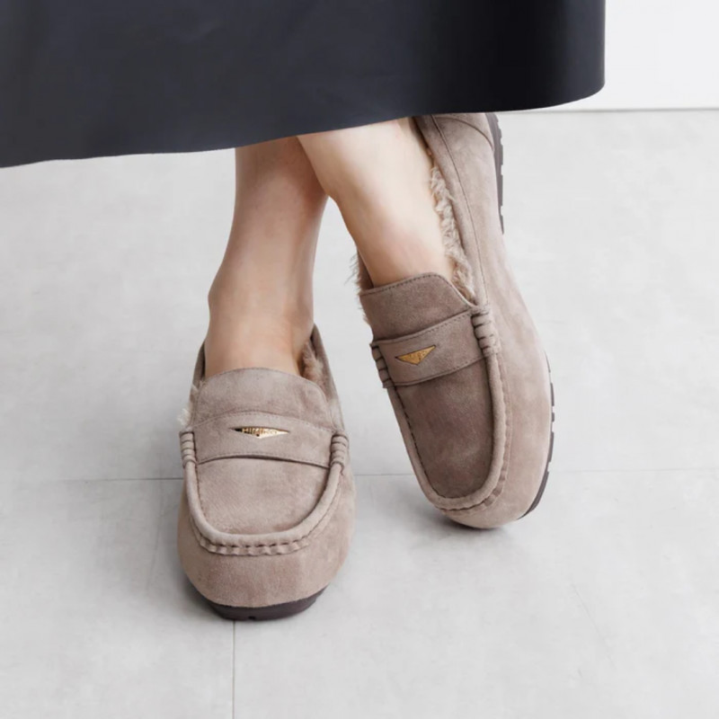 柔らかく上質なシープレザーと、裏側全体に使ったふわふわのファー素材があたたかく気持ちの良いソフトな履き心地です。
