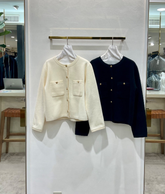 画像2枚目》ゴールドのボタンがアクセント☆胸元にポケットのついたクルーネックカーディガン