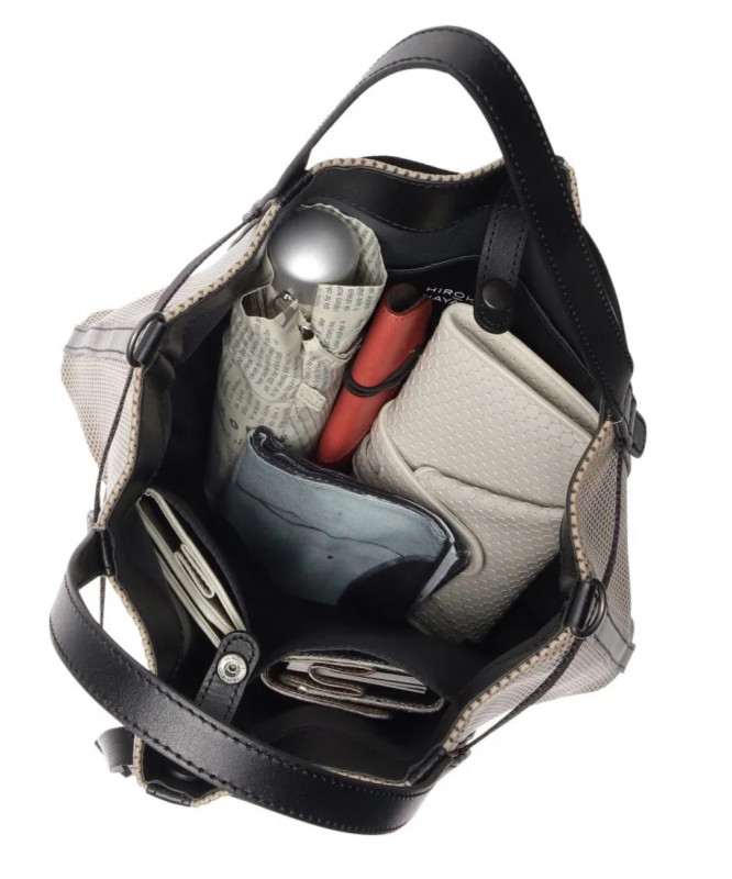 気軽に持てて、底のホックで2通りに変形できます。(取り外し可能の底板がついてます。)