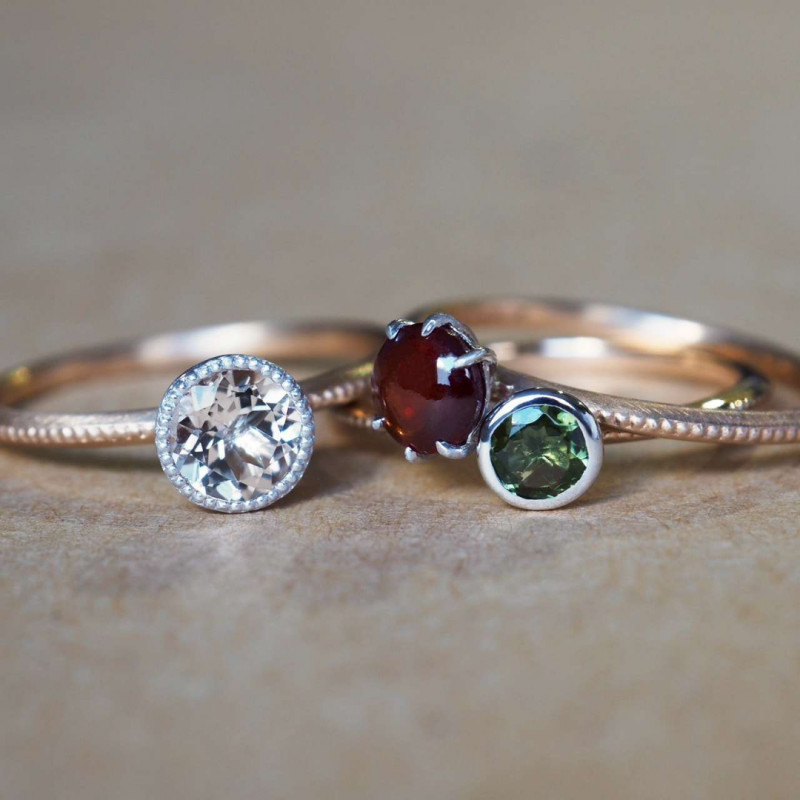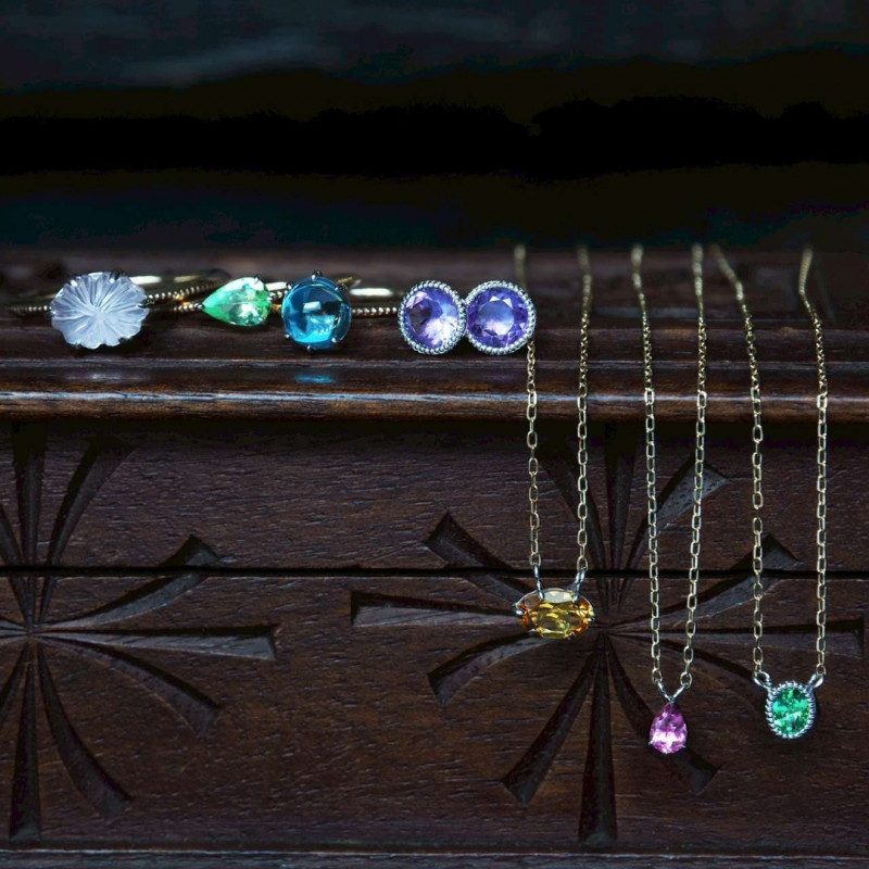 この度仲間入りする、新デザインのお目見えとして、種類もサイズも様々な色とりどりの宝石を留めた、華やかなアイテムをご用意しました。