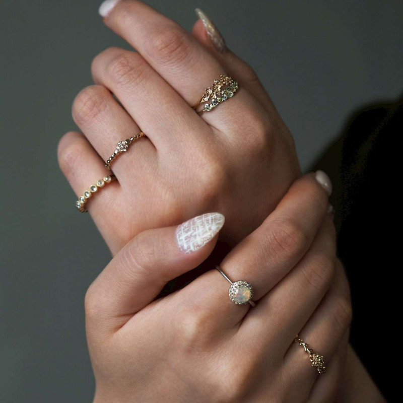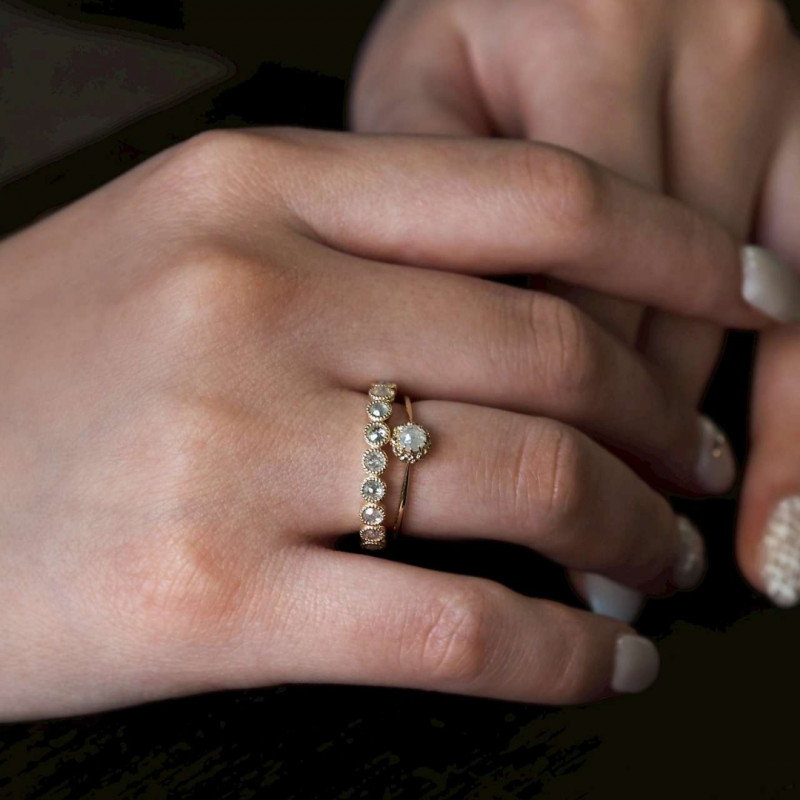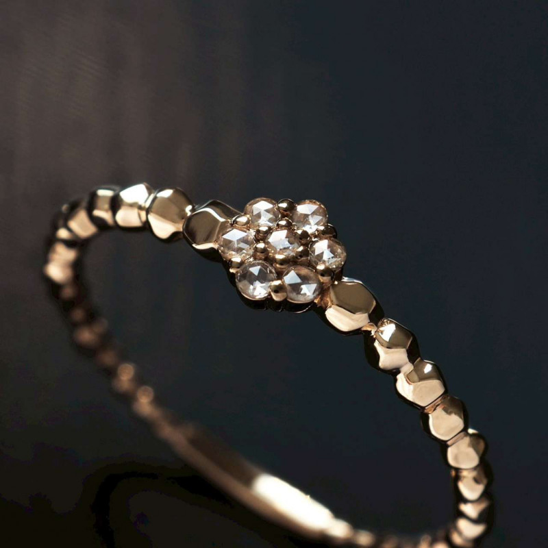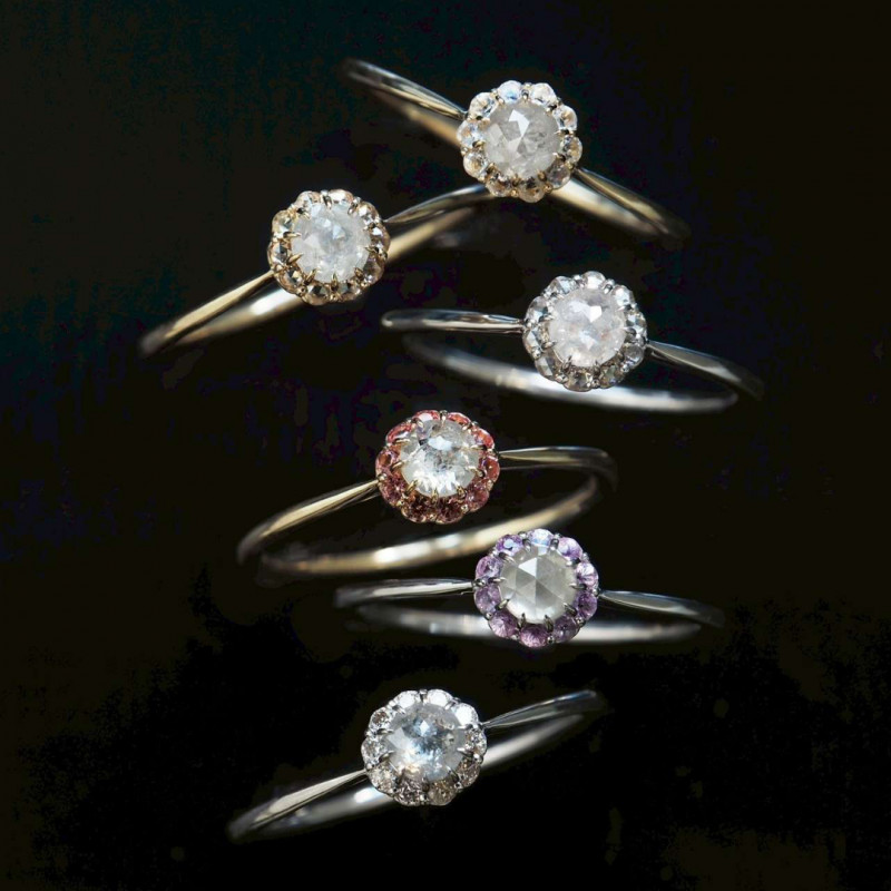 ローズカットダイヤモンドは、大粒のものから1.0mmのメレサイズのものまで、潤んだ輝きをしっかりと楽しめます。