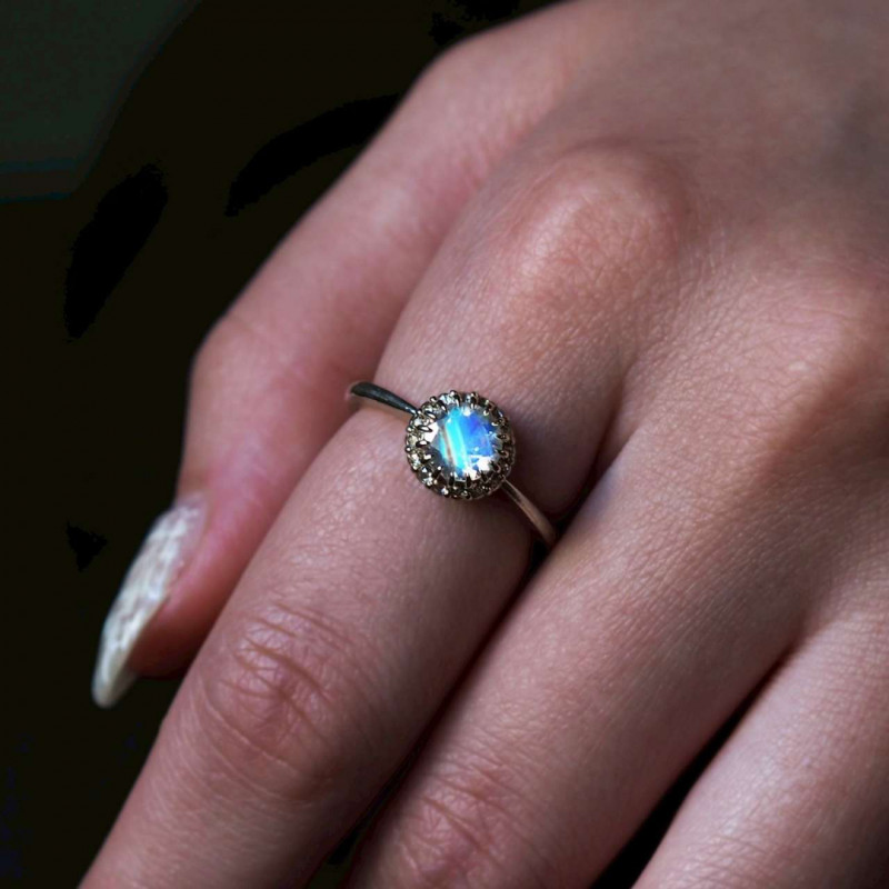 透明度の高い氷の中に見える虹のような、シラーが美しいムーンストーン。