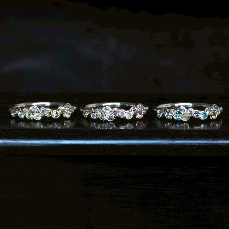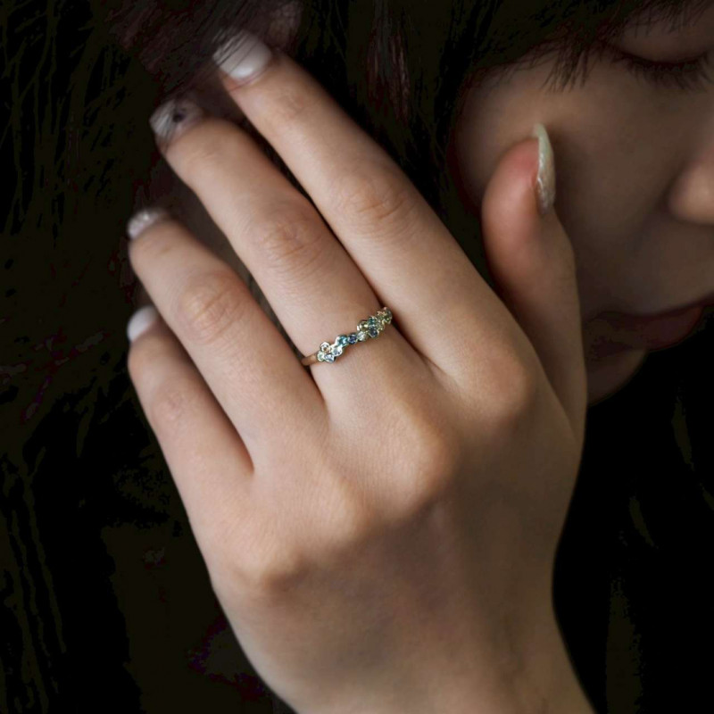 淡い色合いのカラーストーンの響き合いは、朝陽に照らされた霜のように儚い美しさです。
