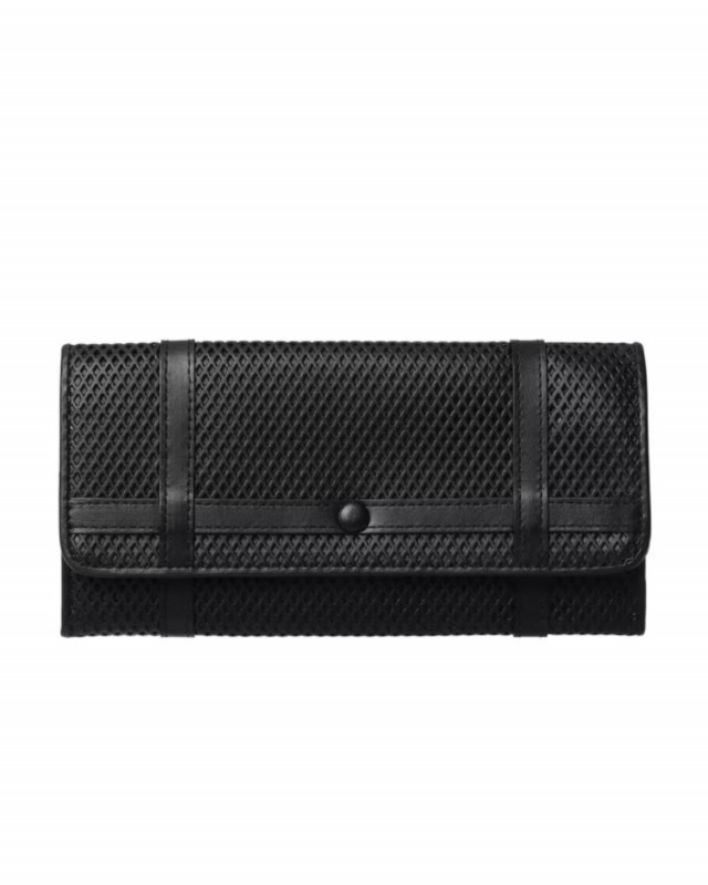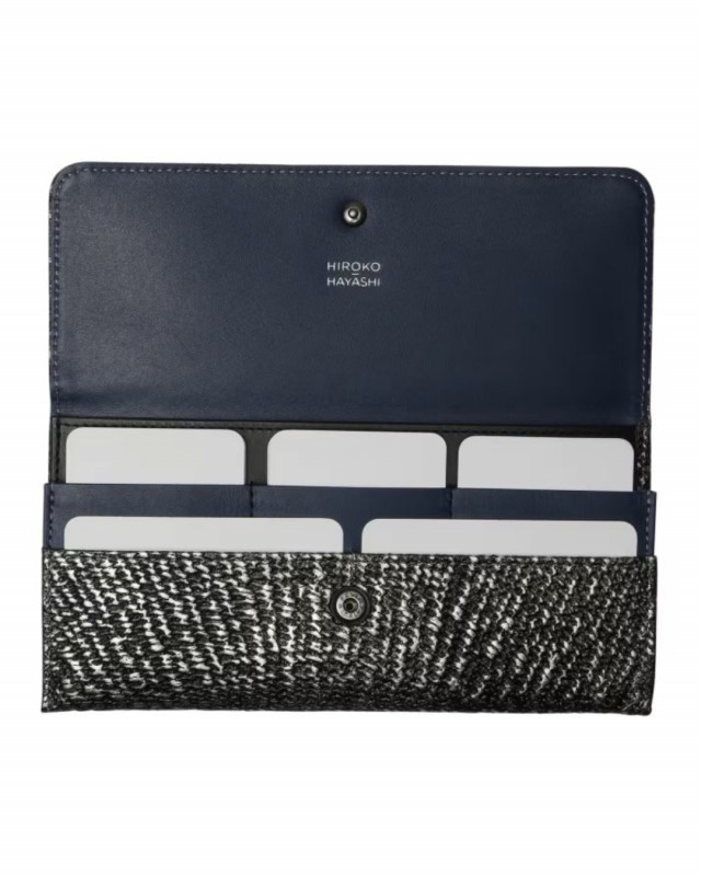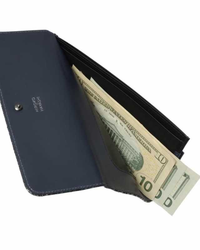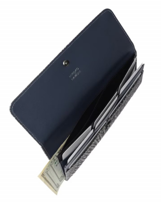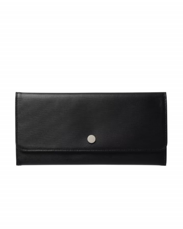 スナップボタンを1つはずすだけで、お札、小銭、カード全てが取り出せ、より薄さを追求した長財布です。