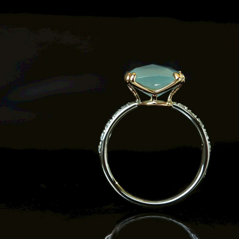 10mmサイズの大粒の宝石を、ロココ様式の家具のように湾曲した爪で支えるその姿は、優美そのもの。