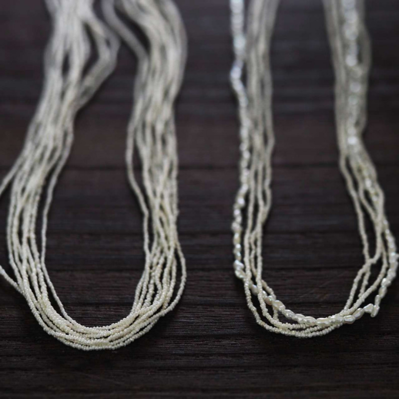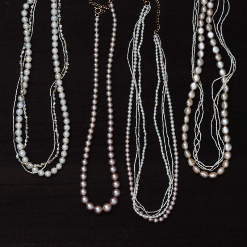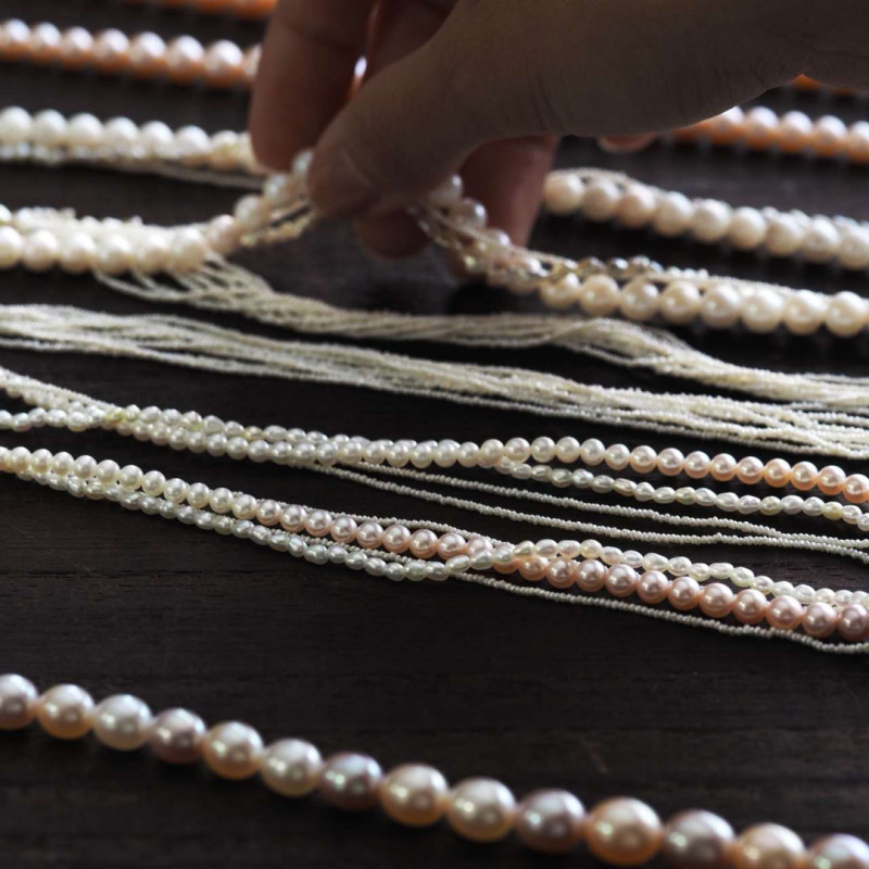 一粒ずつ、色もかたちも異なる真珠たち。サイズのわずかな違い、色味のグラデーション。