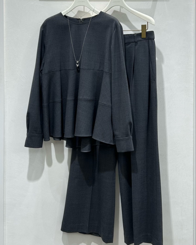 洗えてシワになりにくいサキソニー素材なので、気軽に着られます。