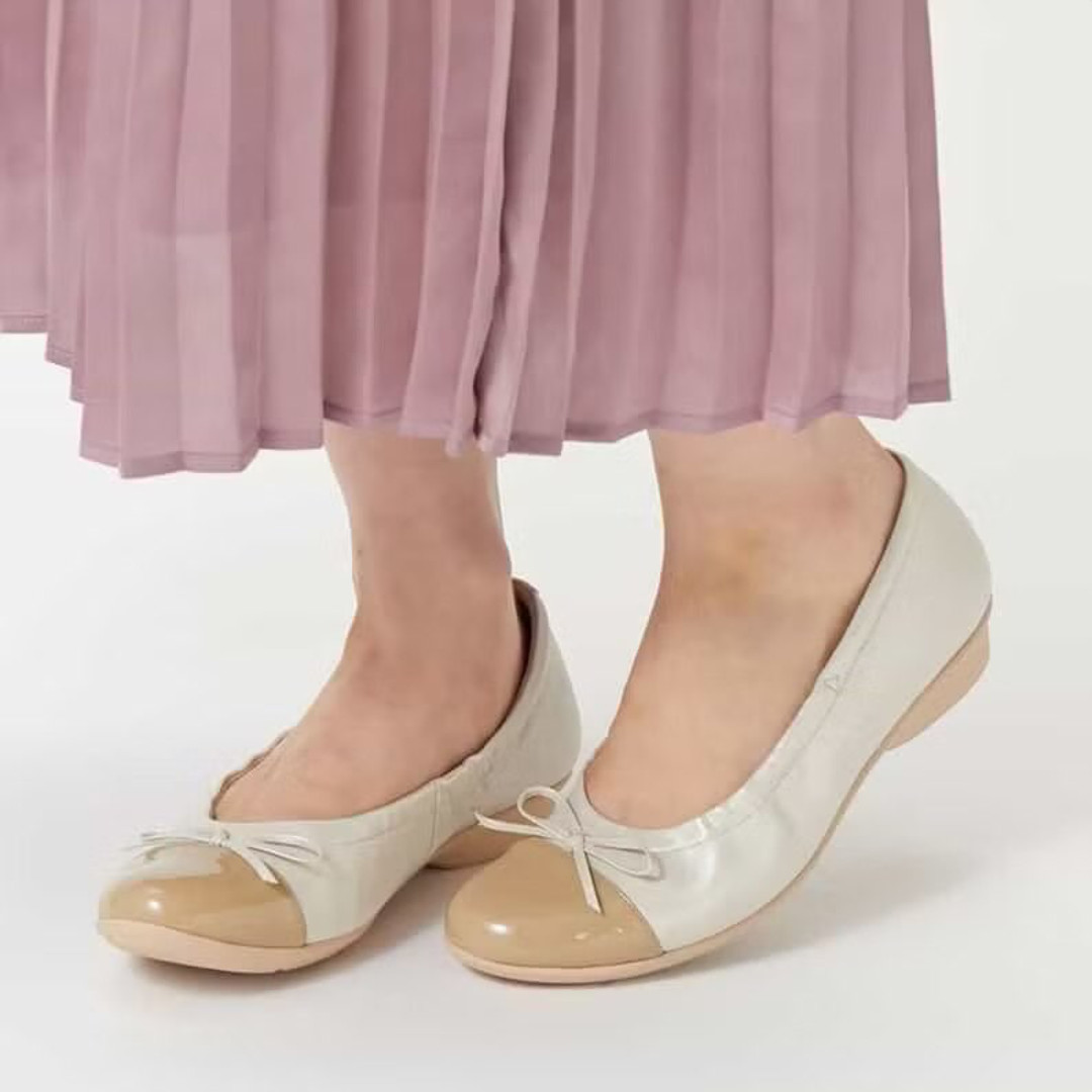 スムースレザーをメインにつま先部分にエナメルを配しています。甲にリボンをあしらったフェミニンなデザインで、さまざまなシーンに活用できるやわらかな履き心地の1足です。■幅(WIDTH):2E