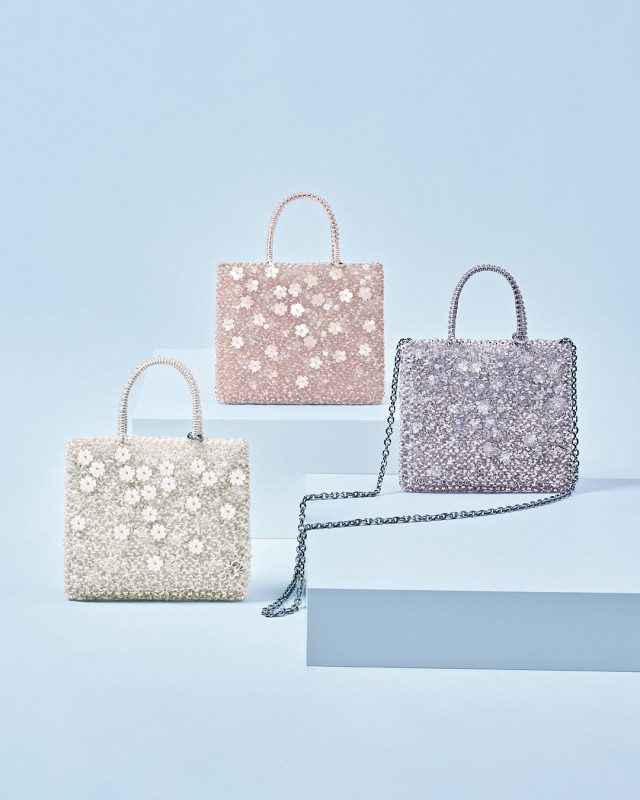 柔らかなフラワーモチーフを繊細に編み込み、春の光を受けてきらめく軽やかな表情が印象的なデザインです。