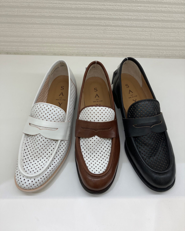 オールシーズン履けるローファーに、季節感たっぷりの軽やかなパンチングを施しました。