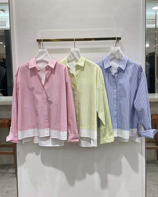 ストライプボディの裾に無地を切り替えデザインにアクセントをつけました。