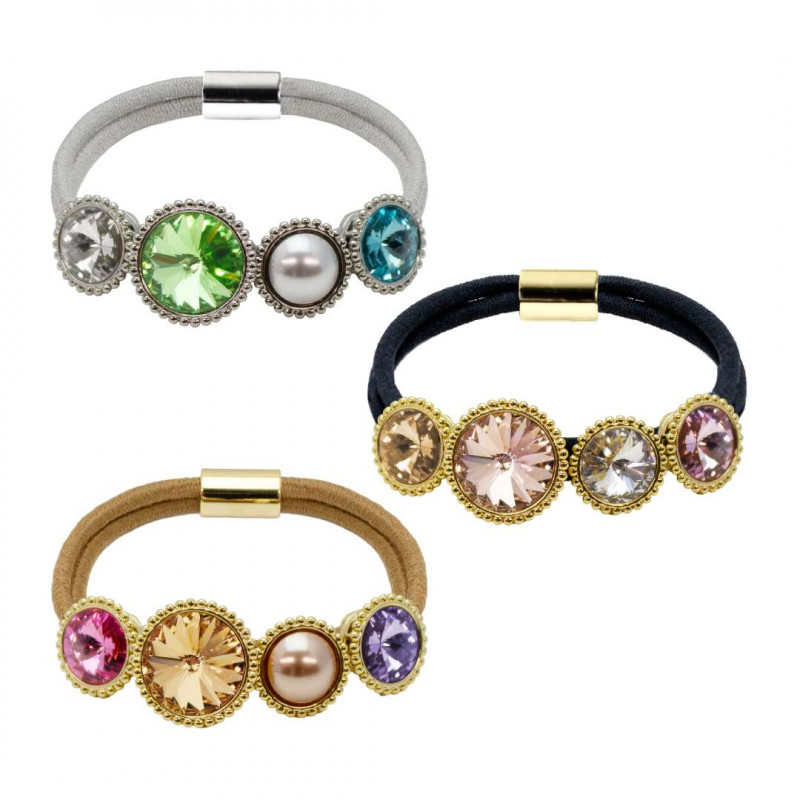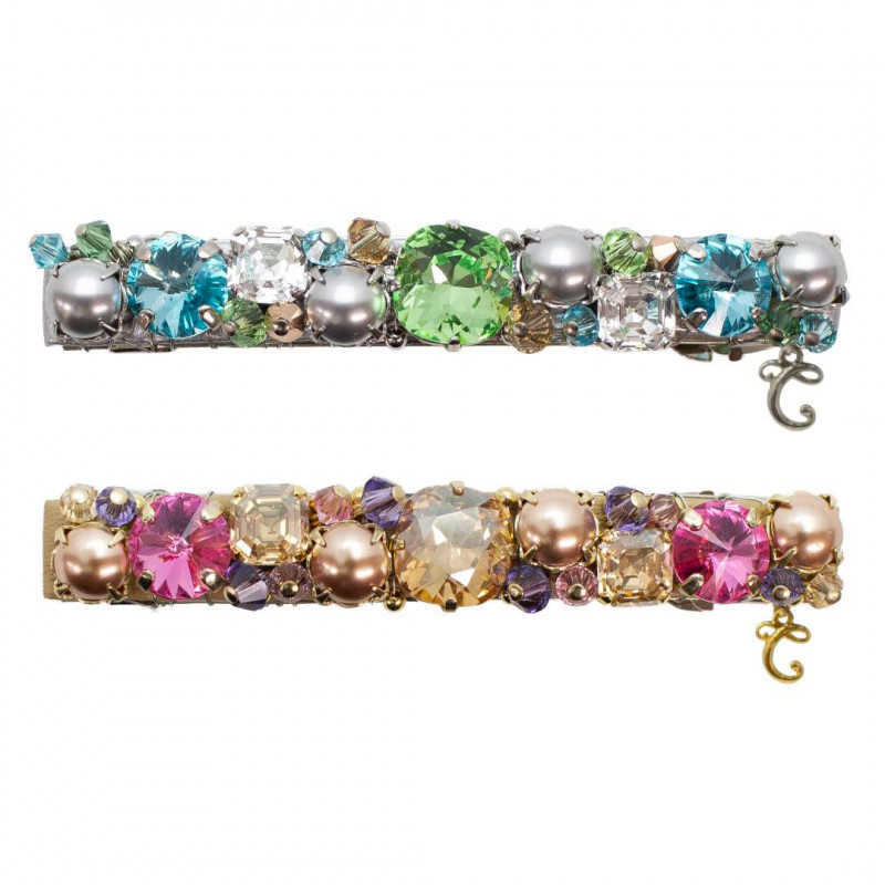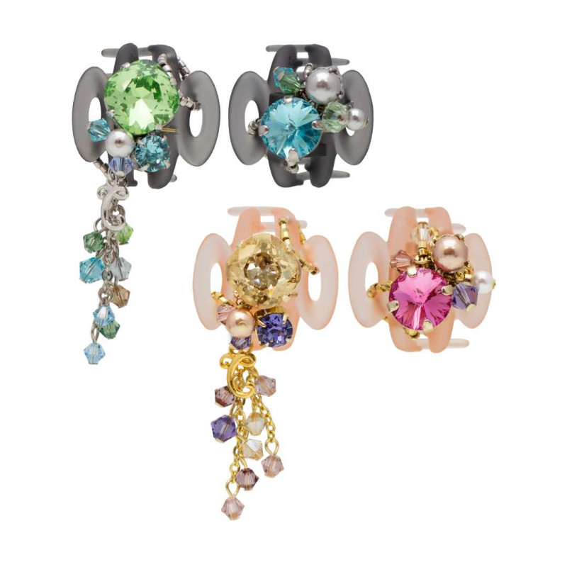さまざまなカットのきらめきが重なり、装いに華やかな印象を与えます。