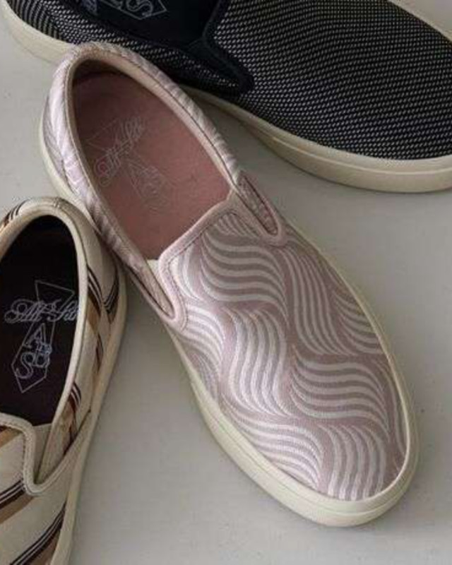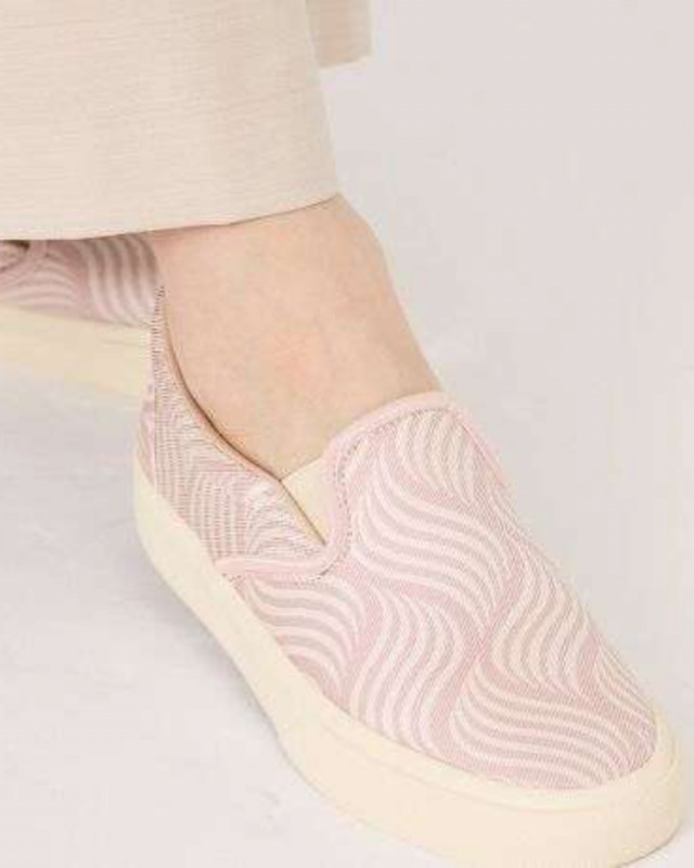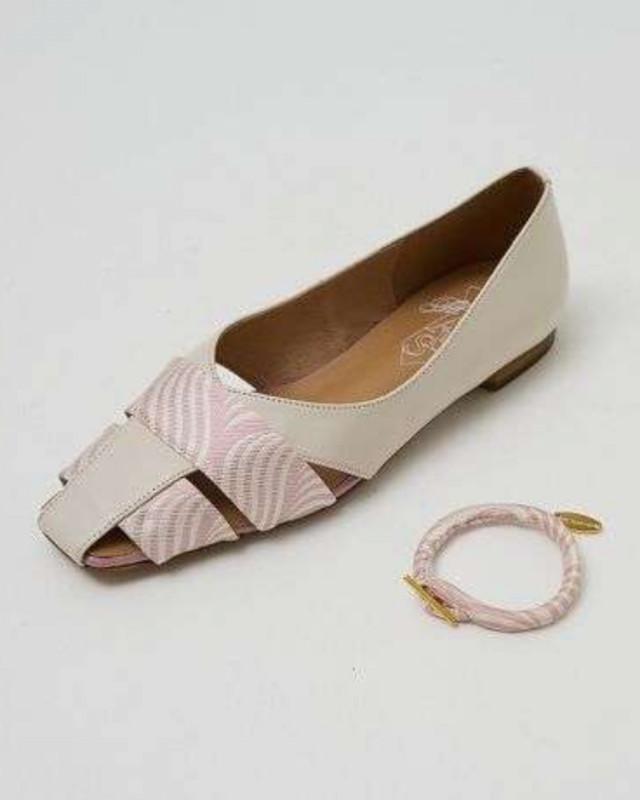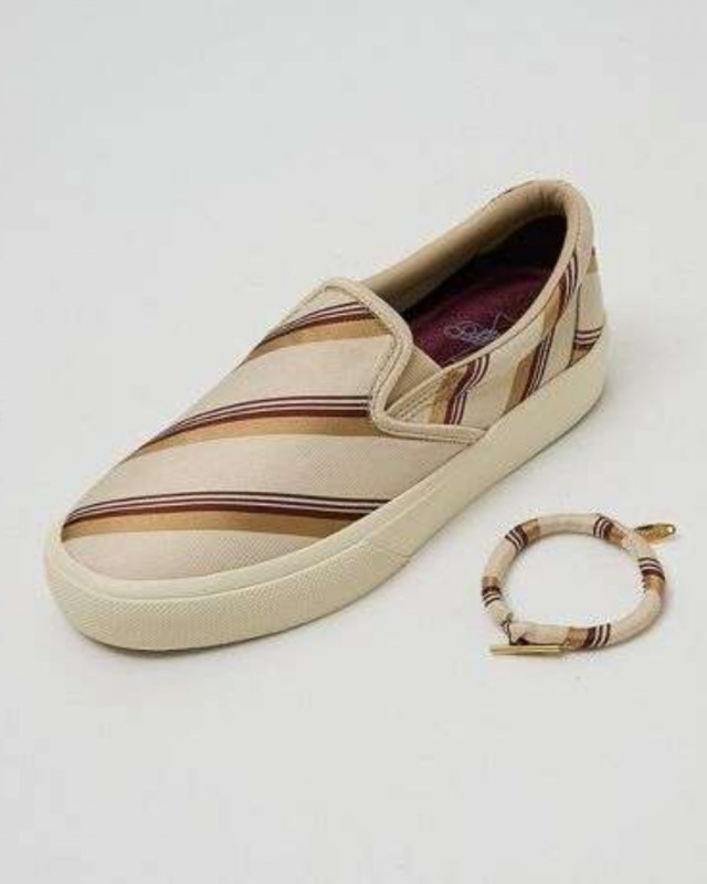 今回このこだわりの詰まった生地を、ファンも多い定番のスリッポンスニーカーと、グルカモチーフパンプスに乗せています。