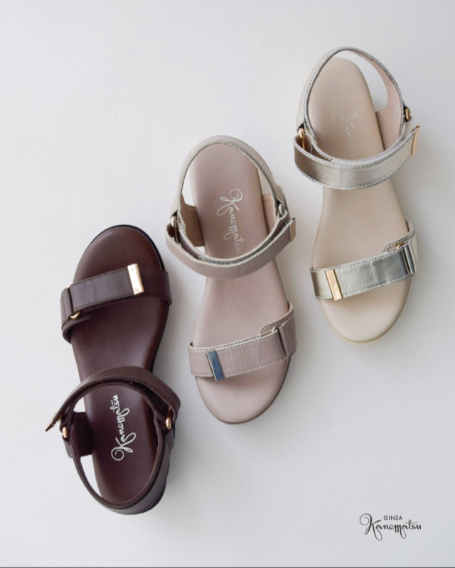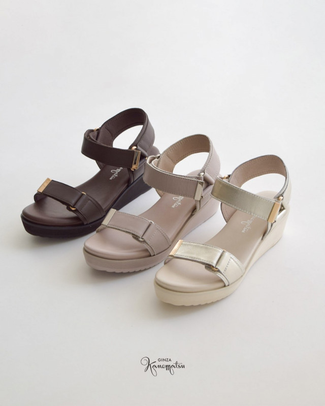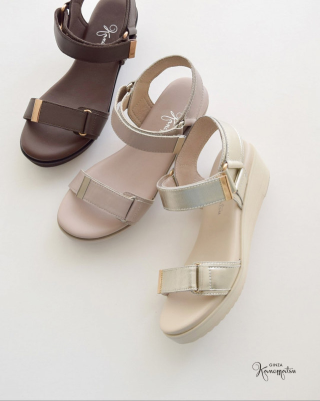 スポーツサンダルでありながら、銀座かねまつらしく、どこかキレイめな雰囲気を残した一足です。足首と指先、2箇所のマジックテープで調整ができるので、安定感のある履き心地です。