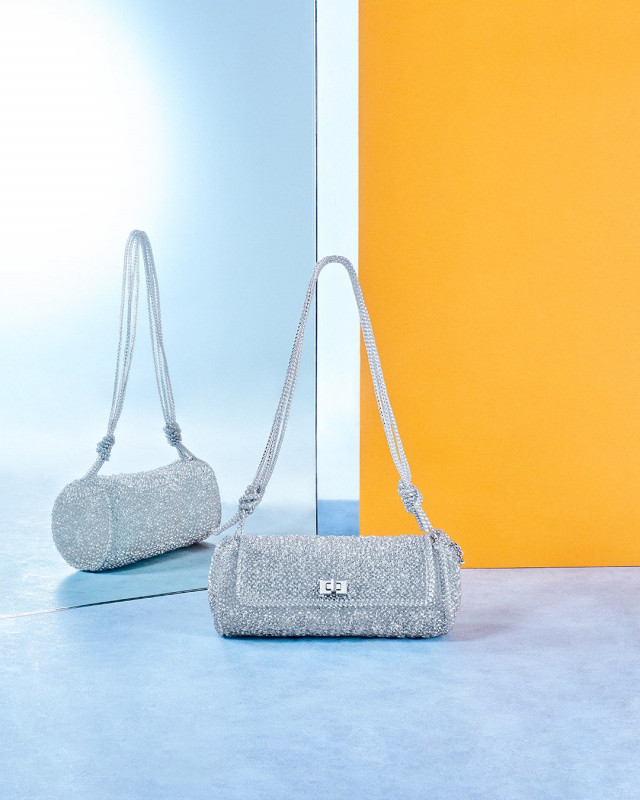 ショルダーストラップはノット(結び目)部分をスライドさせて長さ調整ができ、肩がけにも斜めがけにもアレンジが可能。