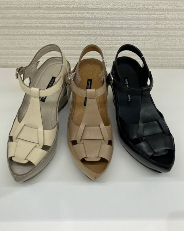 ストーム付きで傾斜も少ないので、足裏にフィットした快適な履き心地と美脚効果を兼ね備えたサンダルです。ヒールが苦手な方にもオススメです。