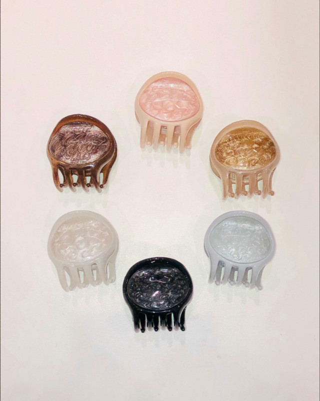 パールとラメの複雑な輝きが美しいクリップ。コロンとしたフォルムがキュートなアイテムです。